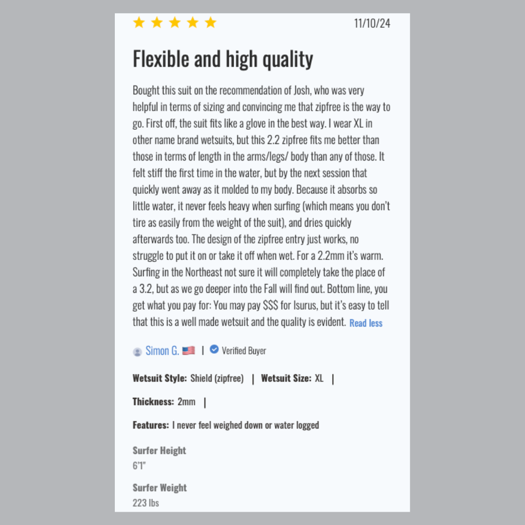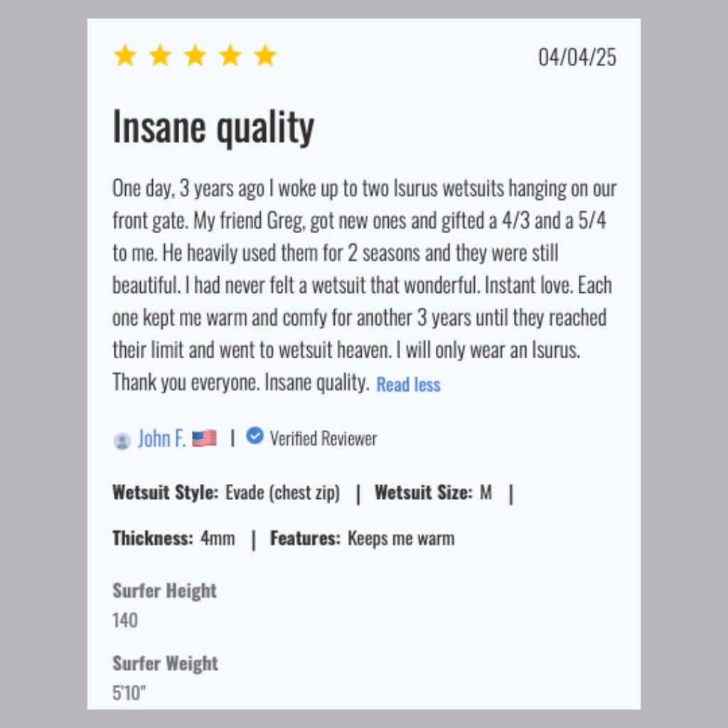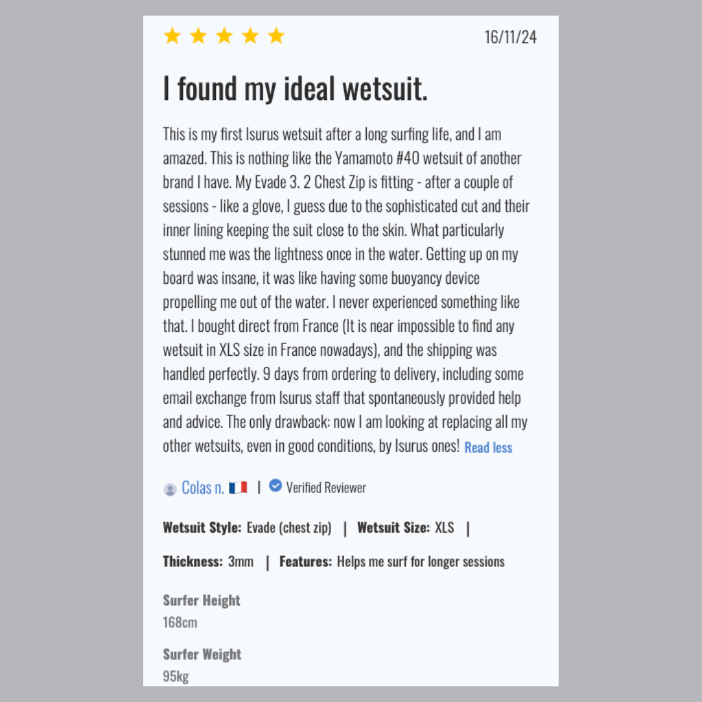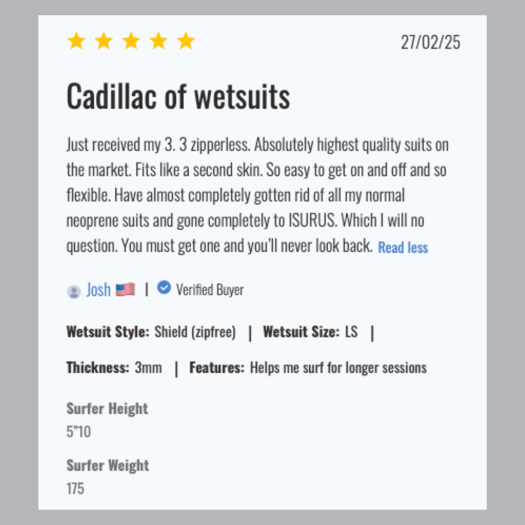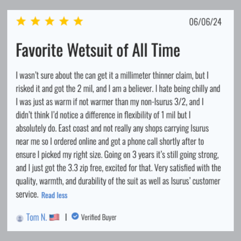 Want to know what customers think of their ISURUS wetsuits? We've compiled a selection of the most informative reviews below.