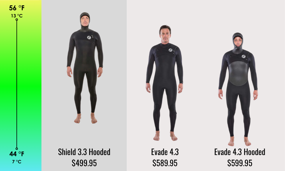 The Shield 3.3mm hooded is included alongside the 4mm wetsuits in our "colder climates" collection, because most surfers tell us it's all they need! The integrated hood reduces heat loss and gives you protection duck-diving in colder water.