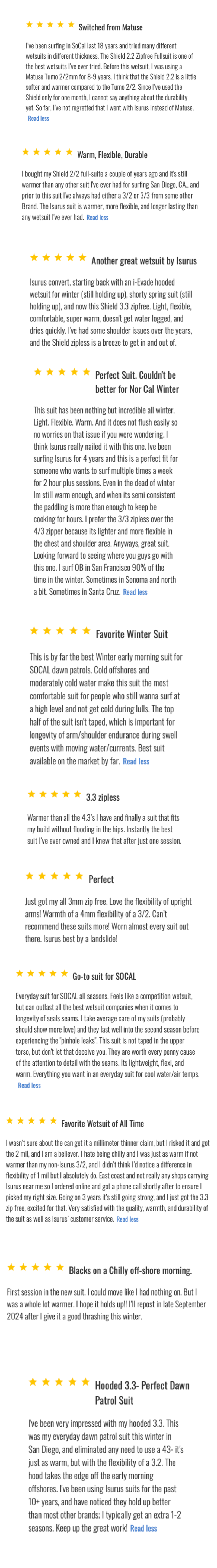 Sure, professional surfers love our wetsuits, but what about general customers? We'll let them speak for themselves: