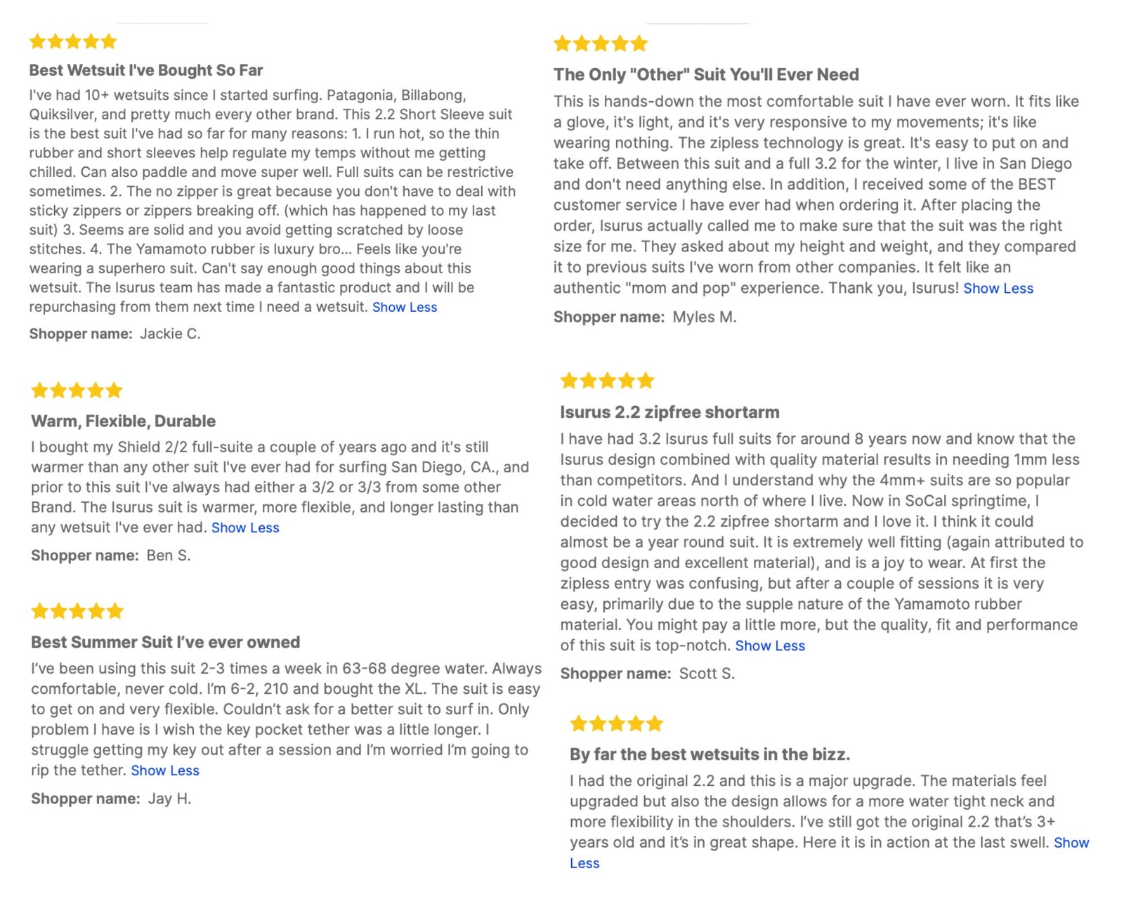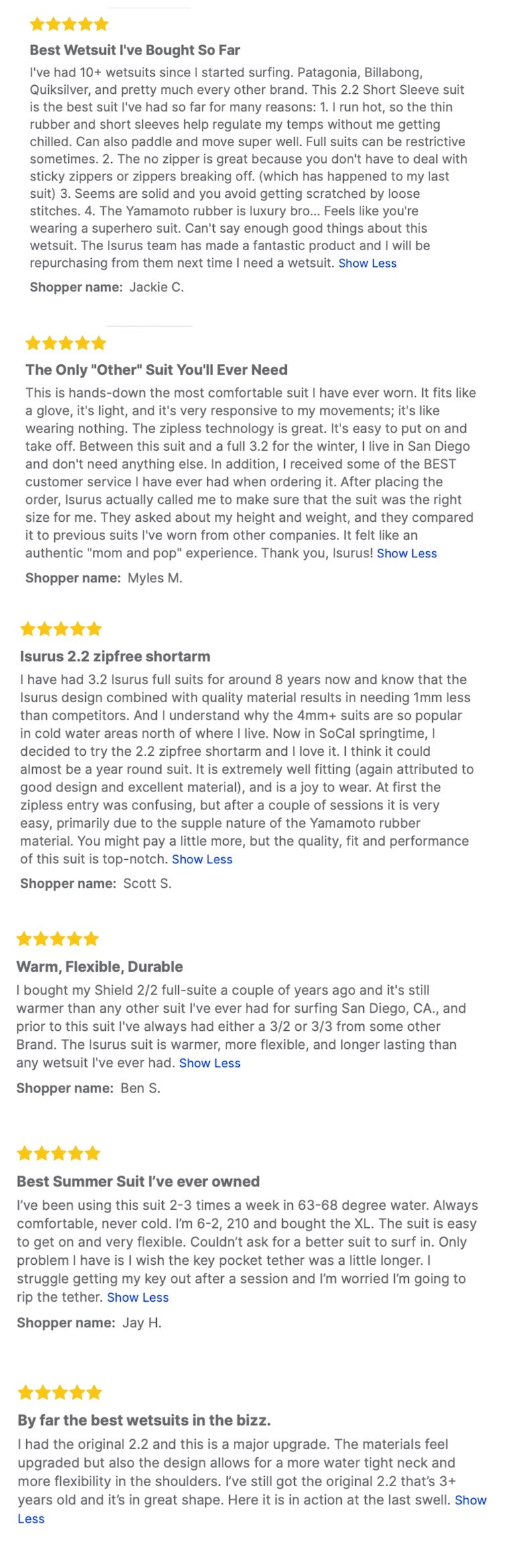Sure, professional surfers love our wetsuits, but what about general customers? We'll let them speak for themselves: